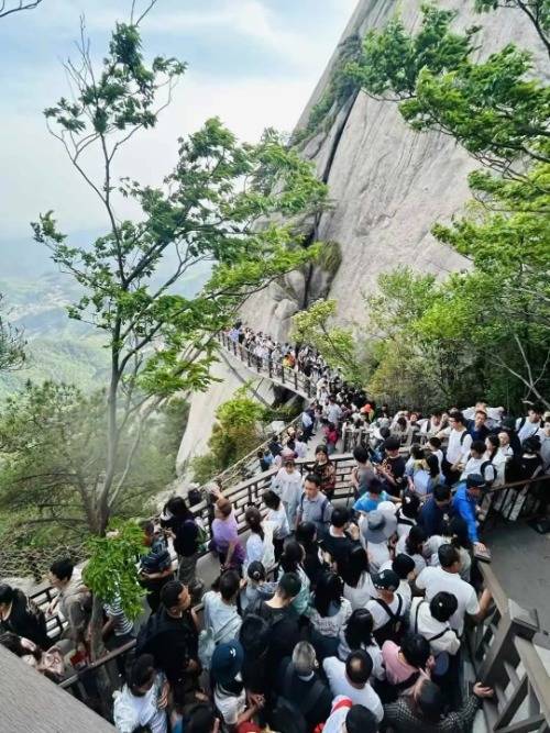 r天柱山景区员工全员在岗,部分员工连续工作超12小时。索道员工孔明表示:“看到游客笑容,再累也值得。”此外,6名高颜值保安组成的“天柱守护团”成为新晋网红,每日巡逻时主动为游客提供拍照指导与安全提示,被网友赞为“最暖风景线”。一位来自上海的游客说:“原本冲着山水而来,却被潜山的人情味圈粉。”
